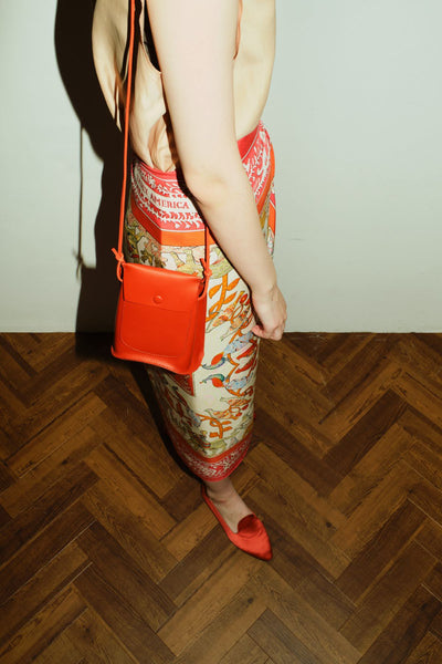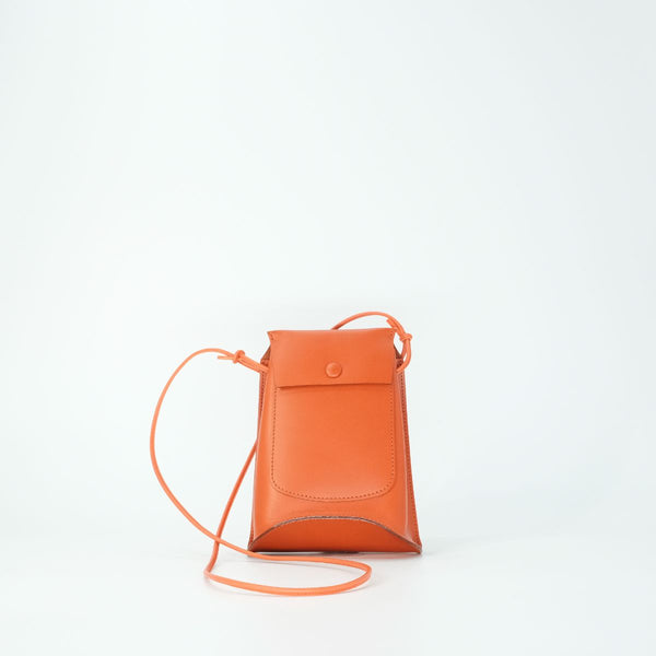 曲がった底マチのシルエットが特徴的なミニショルダー。